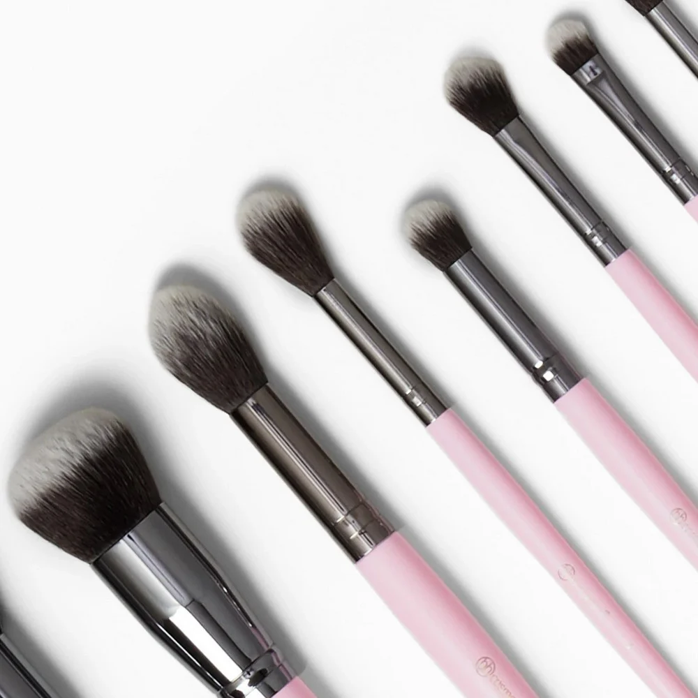 مجموعة فراشي مكياج من Biella، تحتوي على عدة فراشي أساسية لتطبيق مختلف مستحضرات التجميل.