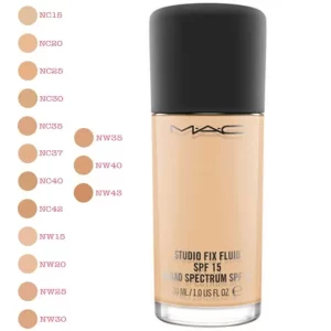 أساس “استوديو فيكس” من ماك، بودرة مضغوطة توفر تغطية متوسطة إلى كاملة، سريعة التطبيق ومناسبة للتثبيت.