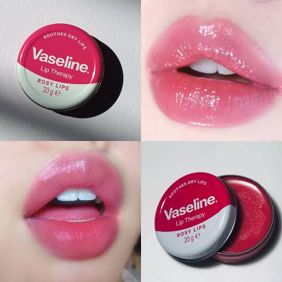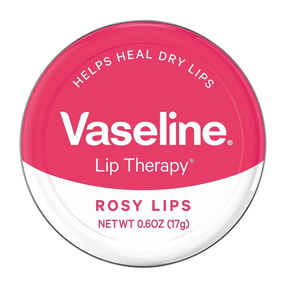 مرطب شفاه في علبة معدنية، يمنح ترطيباً ولمعاناً خفيفاً، غالباً بنكهة أو لون وردي.