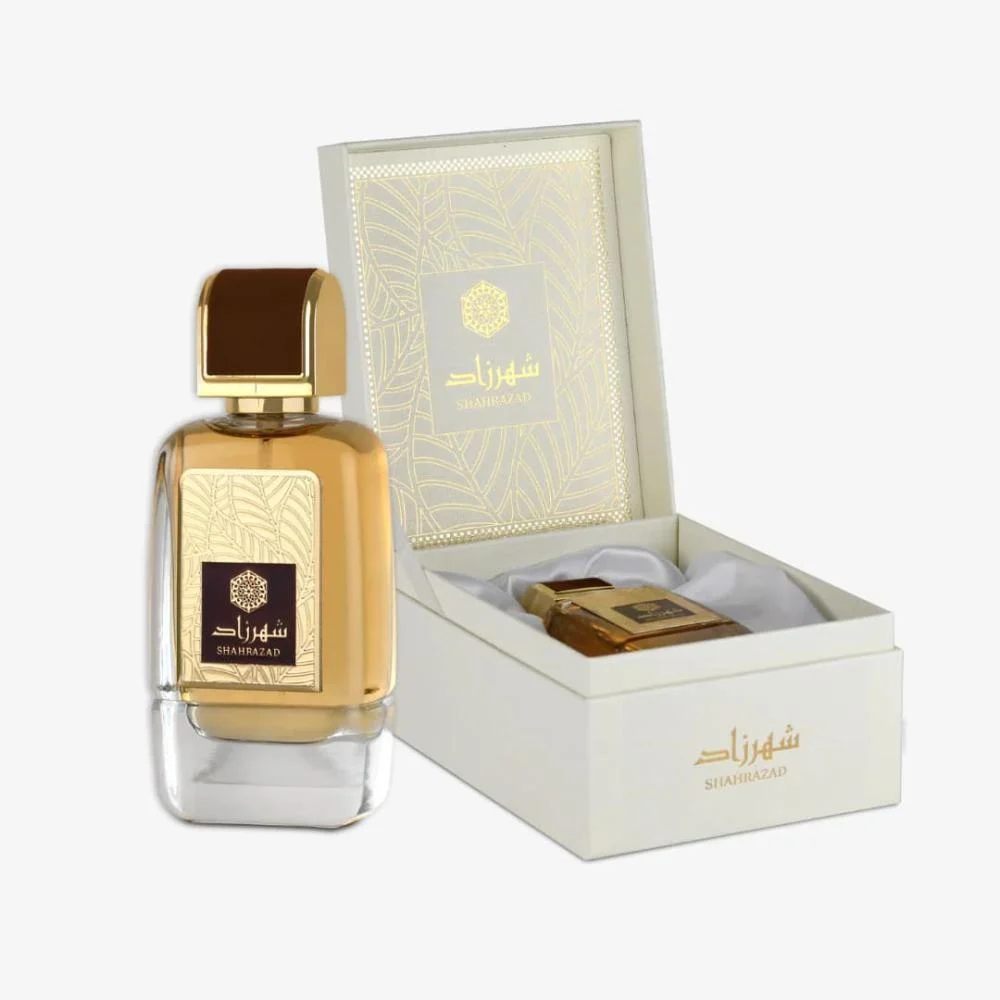 عطر أرض الزعفران شهرزاد النسائي عطر شرقي زهري غامض. يمتزج فيه الأزهار مثل الياسمين والورد مع التوابل الشرقية والعنبر.