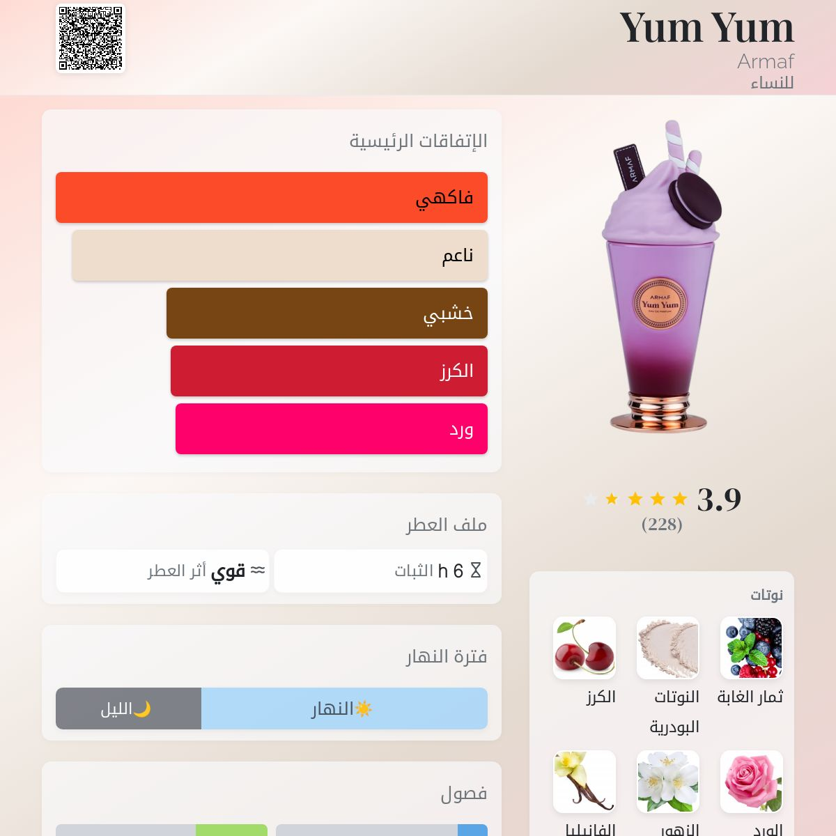 عطر أرماف يم يم النسائي يجمع بين نفحات الفواكه الشهية مثل التوت والكمثرى مع لمسات الكراميل والفانيليا الدافئة، لرائحة جذابة ولا تقاوم.