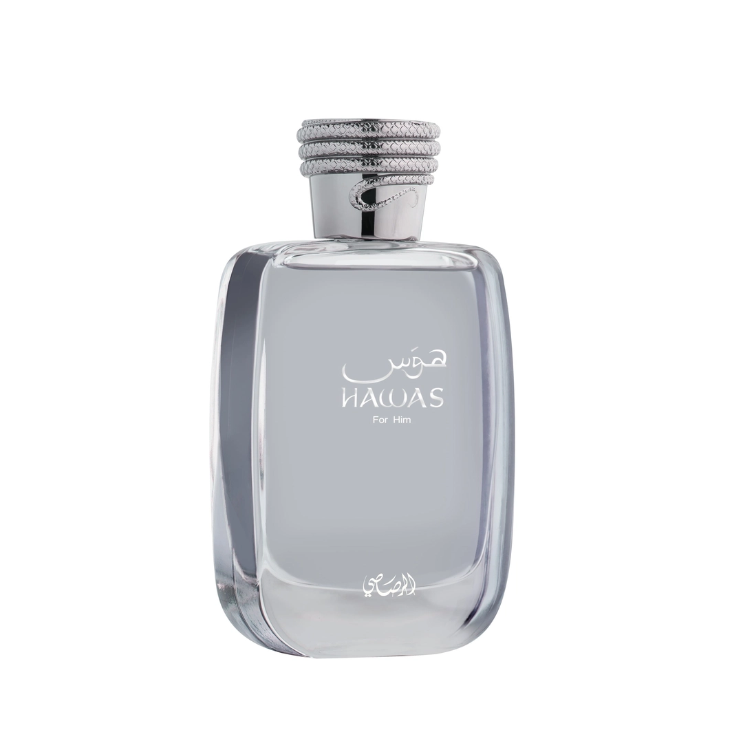 عطر رصاصي حواس للرجال عطر شرقي خشبي منعش. يفتتح برائحة التفاح الأخضر والحمضيات، ويتطور إلى قلب من القرفة والعود، مع قاعدة من العنبر والمسك.