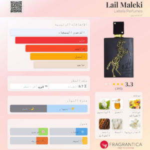 عطر لطافة ليل ملكي النسائي عطر شرقي ليلي فاخر. مزيج من العود الفاخر والورد الدمشقي مع لمسات من العنبر والمسك.