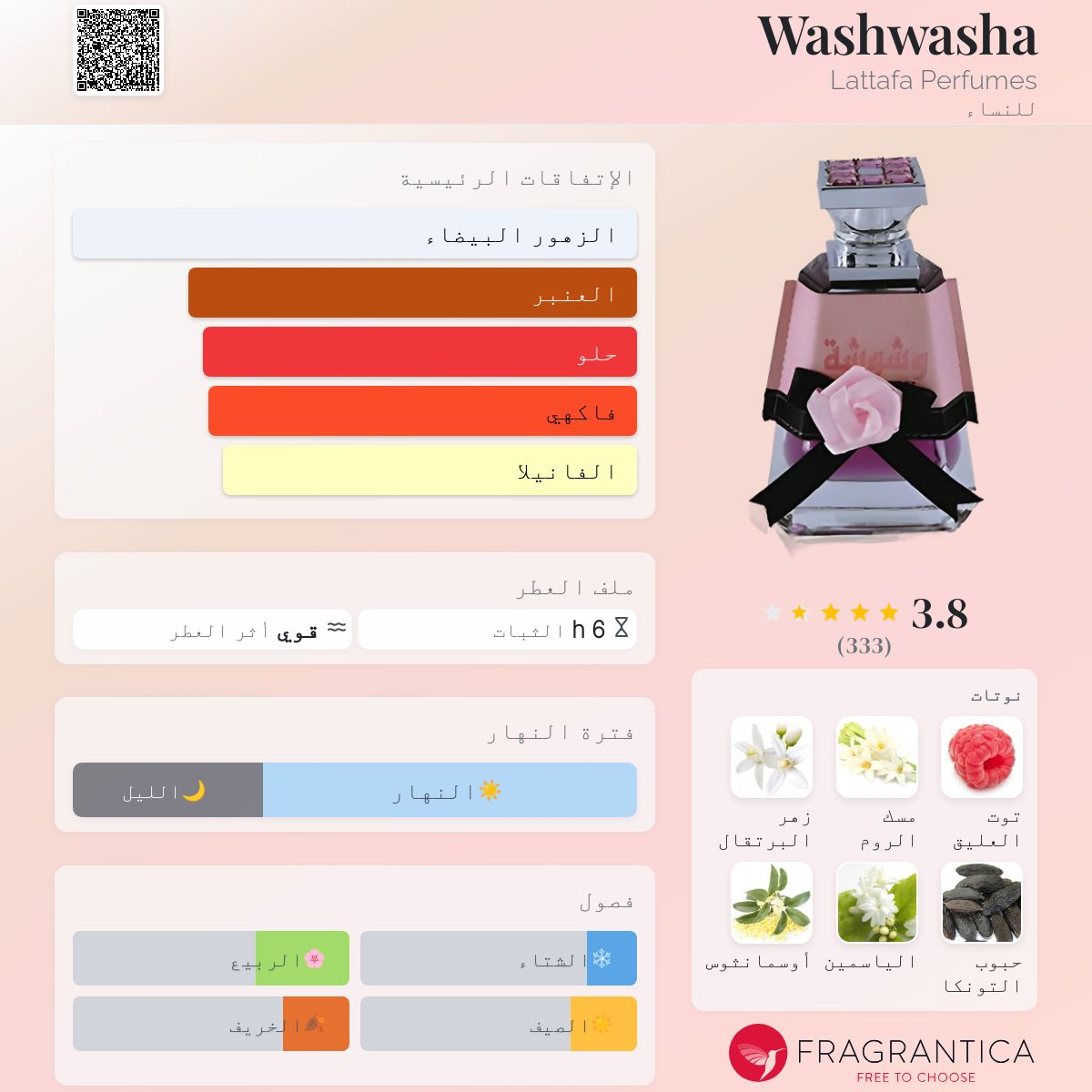 عطر لطافة واش واش النسائي عطر حيوي ومنعش يجمع بين نفحات الفواكه الحمضية المنعشة مثل البرغموت والليمون مع الأزهار الرقيقة، لرائحة نظيفة وجذابة.
