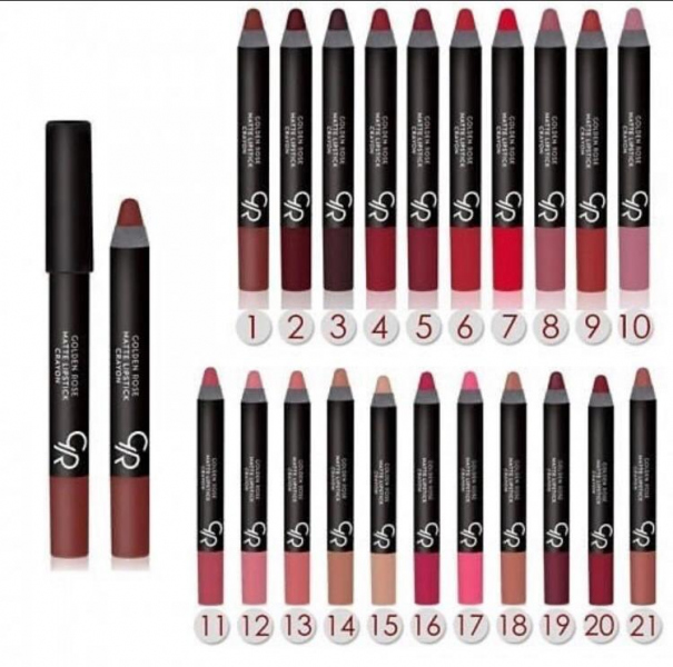 أحمر شفاه Golden Rose بقلم الكريون سهل الاستخدام والتطبيق المباشر. يمنح الشفاه لوناً غنياً ويدوم طويلاً دون أن يجففها.