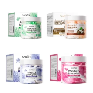 لوشن SADOer بتركيبة غنية بزبدة الشيا (Shea Butter) وزبدة الكاكاو. يغذي البشرة الجافة بعمق ويمنحها النعومة والمرونة.