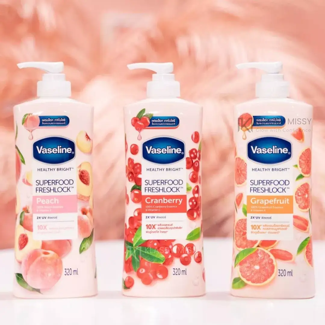 لوشن فازلين للجسم بتركيبته الغنية بالجليسيرين لترطيب عميق يدوم 24 ساعة، مع رائحة فواكه منعشة. يأتي بحجم 100 مل مثالي للحقيبة والسفر، ويمنح البشرة النعومة والمرونة.